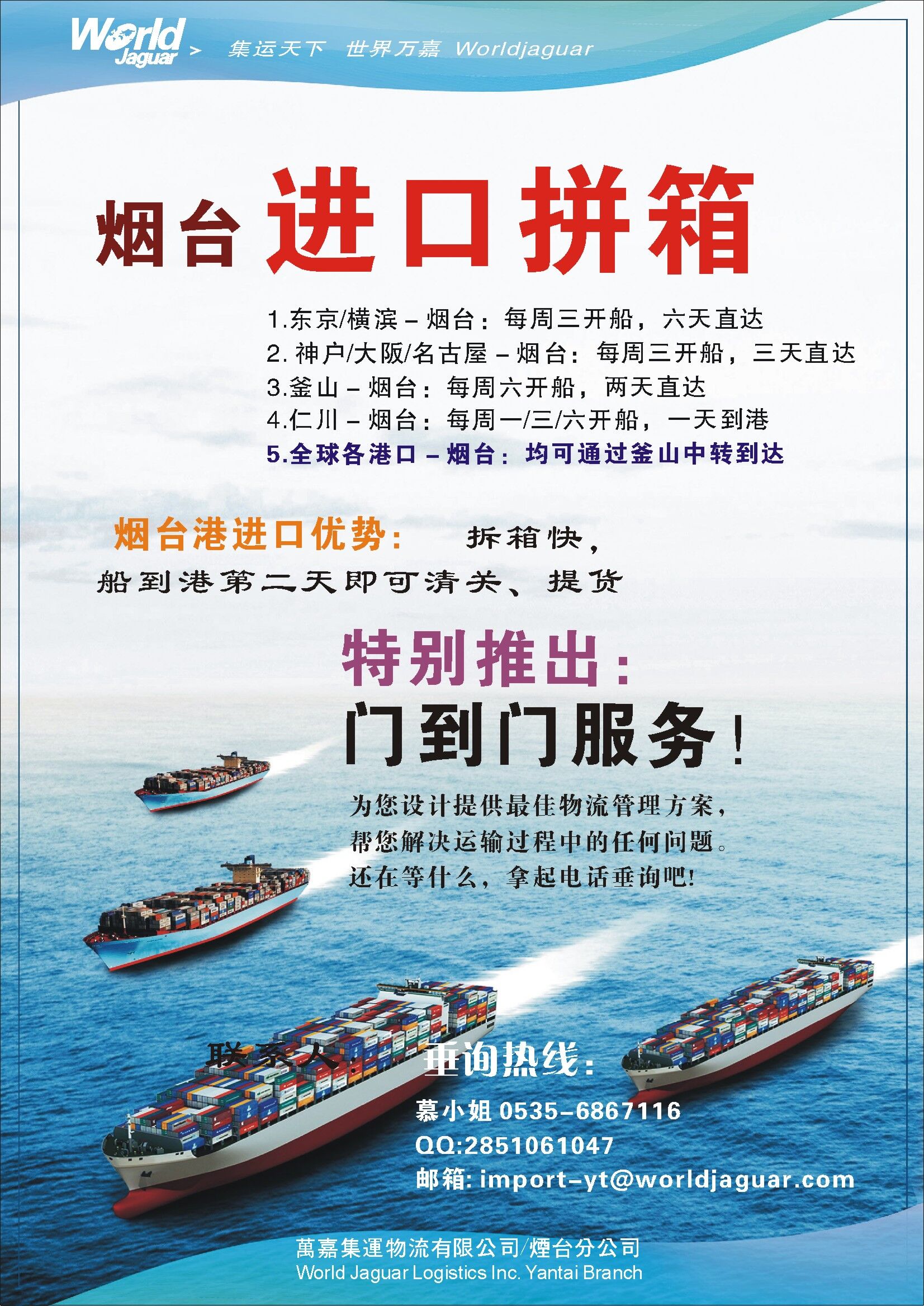 神户-烟台 KOBE 周三 3天 可以大阪/名古屋接货